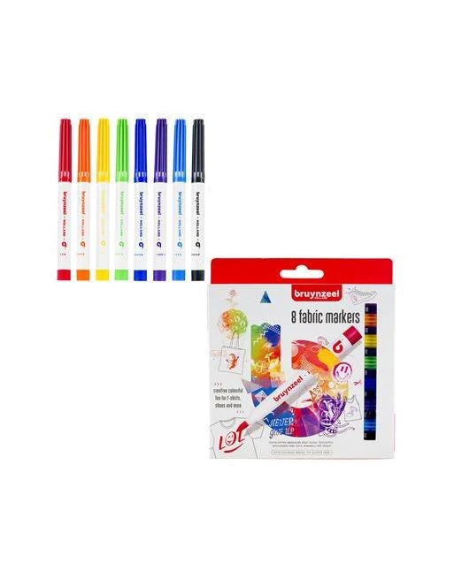 Met de heldere kleuren van deze Bruynzeel textielstiften teken en kleur je de mooiste creaties op stof! Maak je eigen shirt of unieke tas. Het is heel simpel! Wanneer de inkt droog is, strijk je de stof aan de achterzijde. Daarna kun je het kledingstuk wassen volgens de wasvoorschriften die het