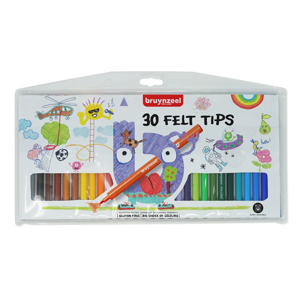 De mooiste tekeningen maak je met de Bruynzeel Kids Viltstiften. De inkt van de viltstiften is op waterbasis en daardoor zijn vlekken op kleding en huid gemakkelijk uit te wassen. Verder drogen de viltstiften niet uit en zijn daardoor lang houdbaar. In het etui zitten 30 viltstiften met een dunne punt.