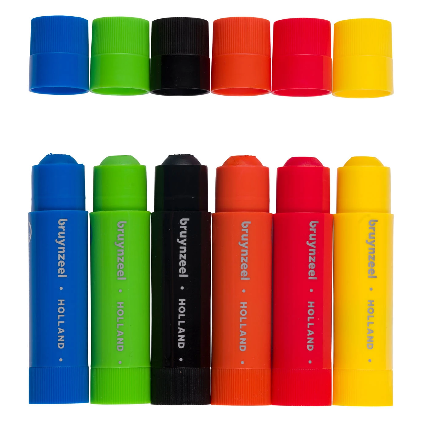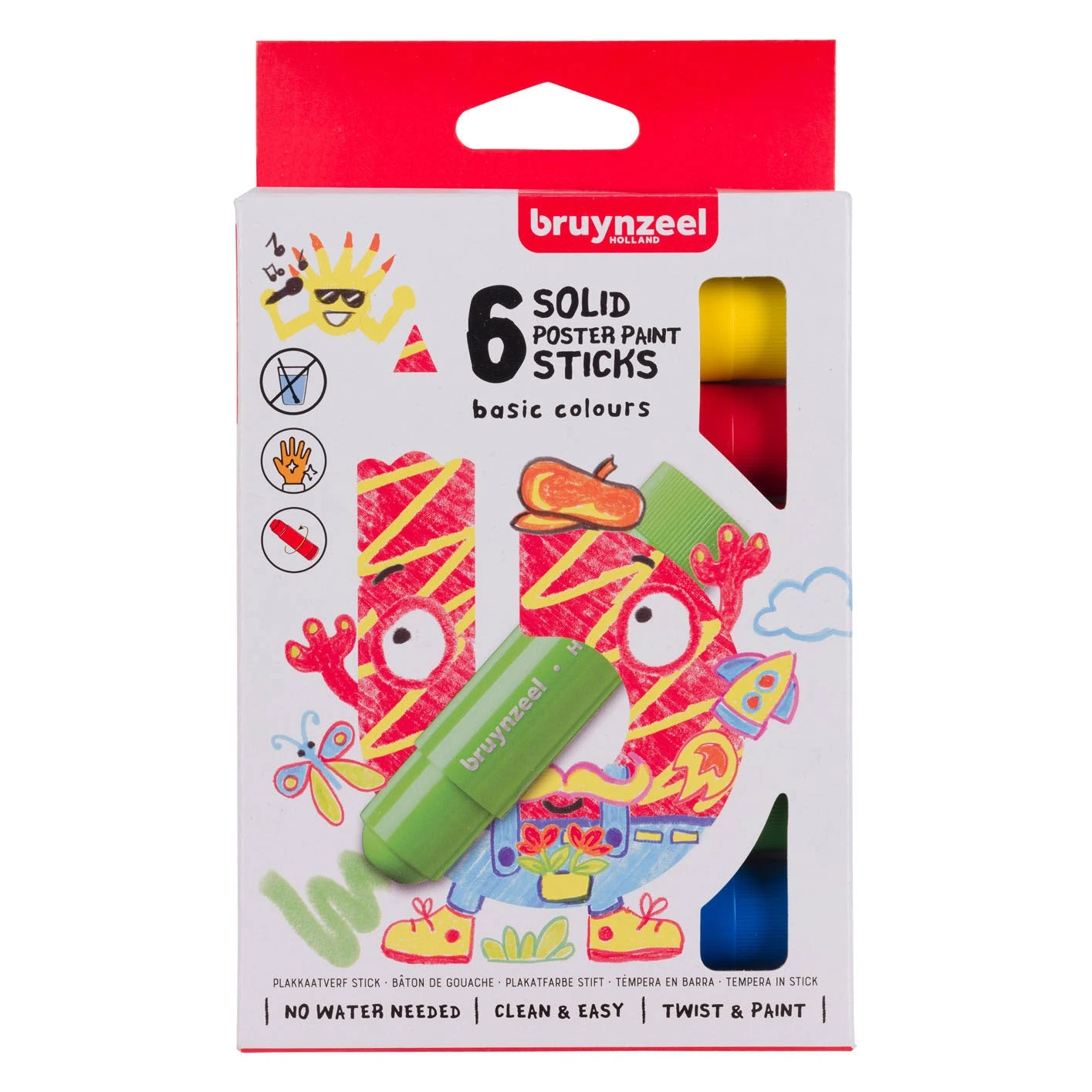 Deze stiften met plakkaatverf zijn speciaal ontwikkeld voor jonge kunstenaars en stimuleren de fijne motoriek. Verfresten zijn makkelijk van de handen te wassen met water en zeep. Bescherm kleding en meubels tegen vlekken. Mochten er vlekken ontstaan op stoffen, was ze dan direct met water en zeep. Geschikt voor gebruik op papier, karton, hout en glas. Inhoud: 6 x 10 gram.
