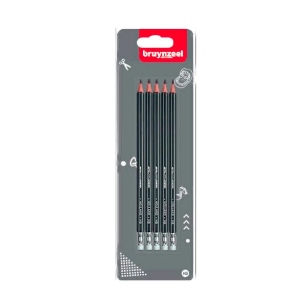 Bruynzeel Teens Grafietpotloden HB + Gumtip Blister 5